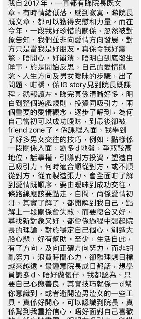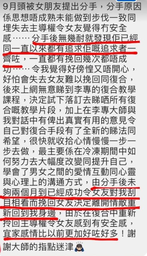 李專有其獨到的愛情見解及愛情疑難解決方案,